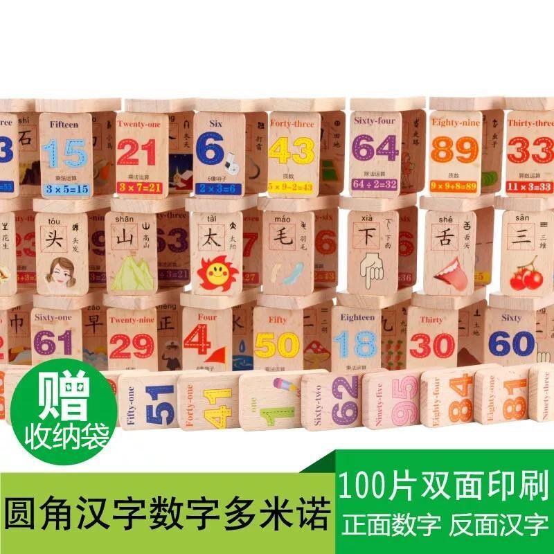 100 slices of double-sided digital Chinese character domino sent to contain 100 pieces of double-sided Chinese character domino sending cashier bags 110 pieces of digital operation dominoes send cashier bags 100 slices of double-sided fruit Chinese characters more