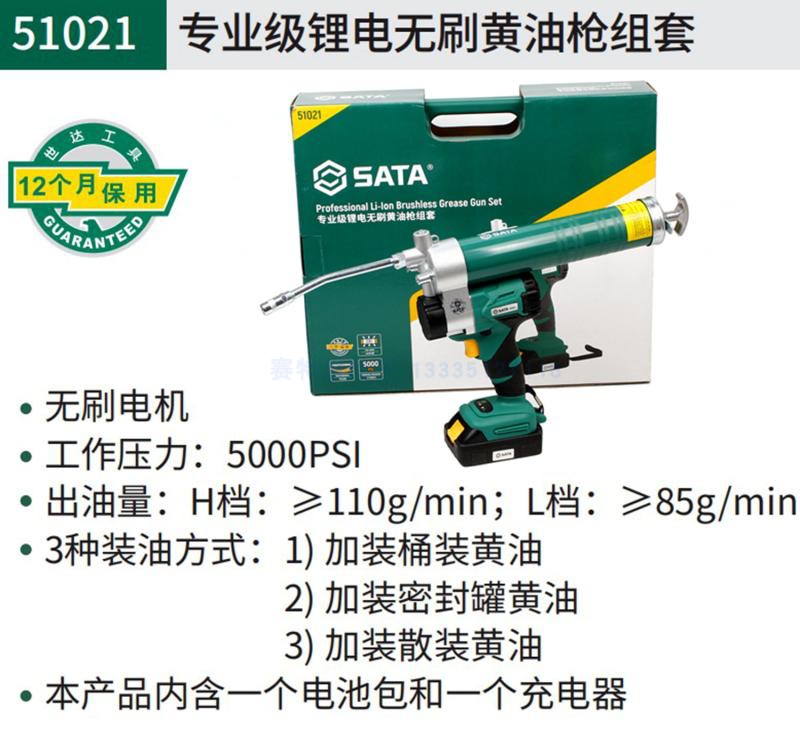 Seda 51021 Professional lithium electric brushless yellow oil gun suit 51520 Lithium battery butter machine 51521 charger