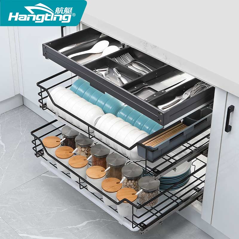 Airship Kitchen Cabinet Pull Basket Tools Basket SINGLE SPACE ALUMINUM DRAWER DAMPER INNER SHELF SEPARATION CONTAINED-Taobao