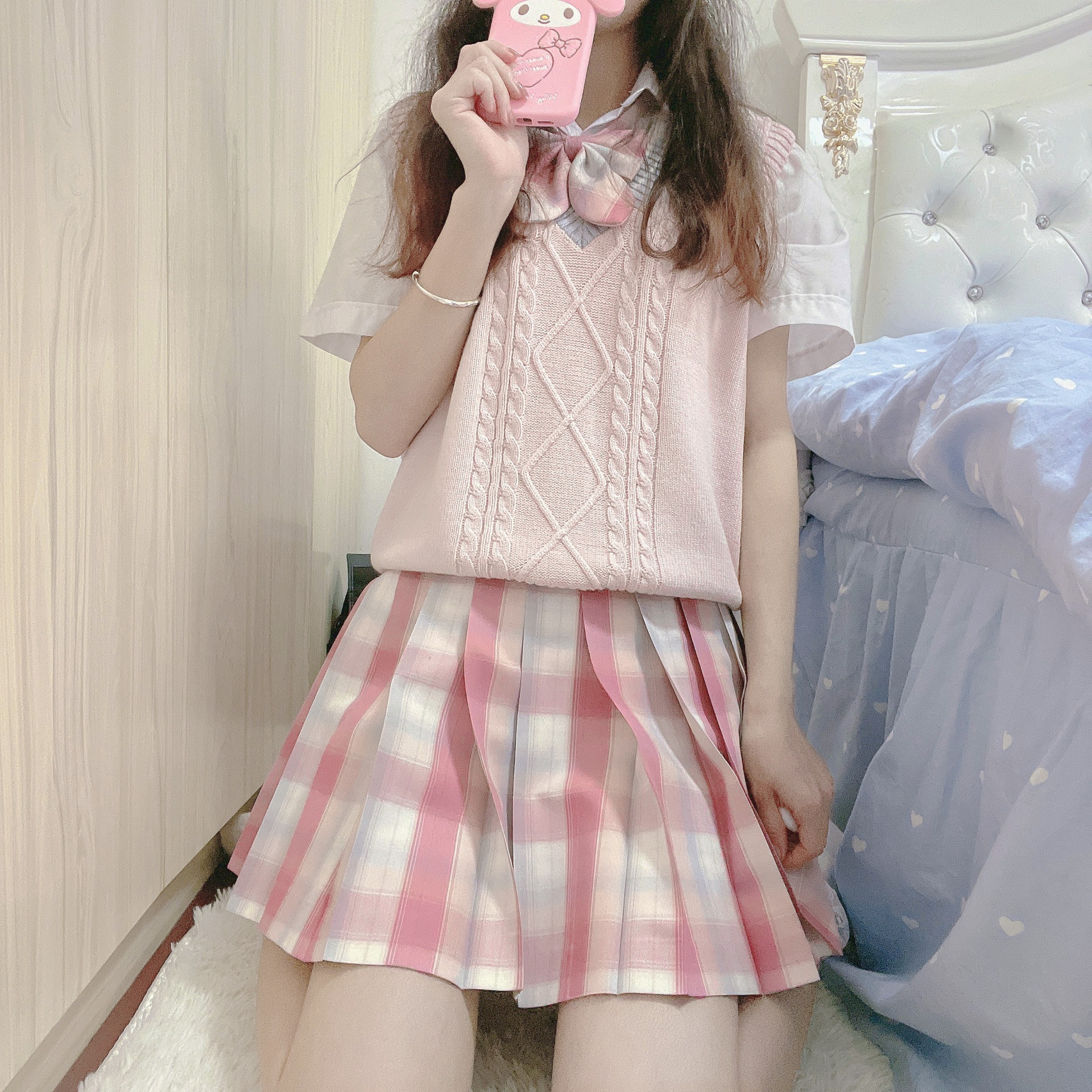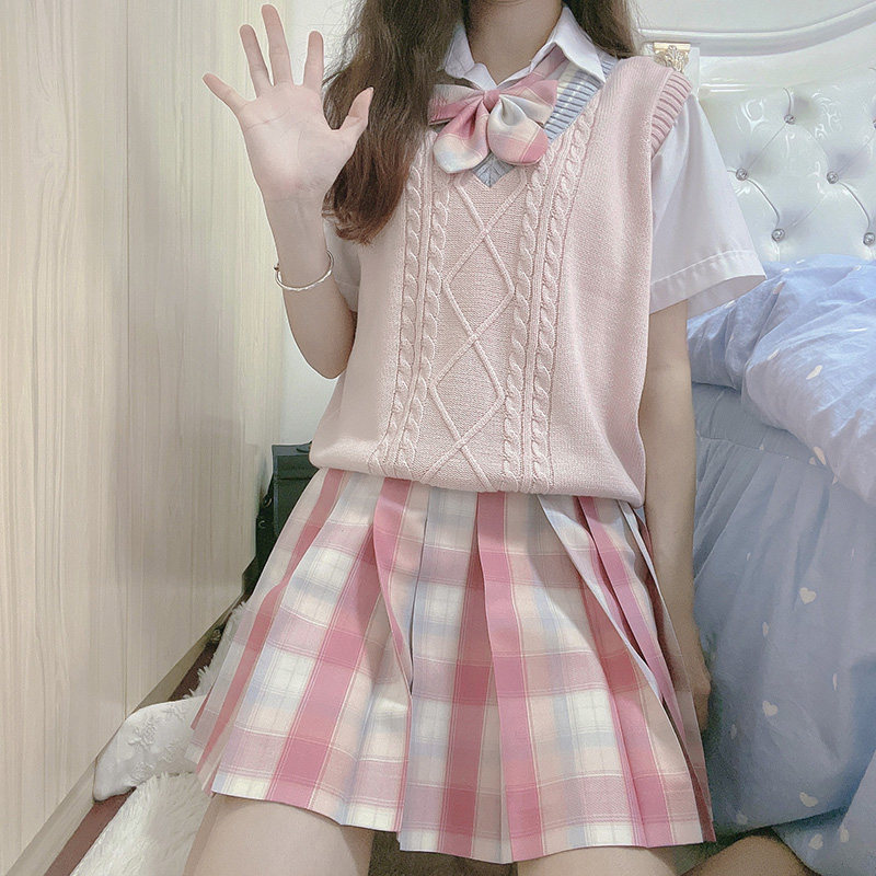 Spring and autumn V-collar vest sleeveless sweater jk uniform women knitted vest sweet College Japanese women Summer pink