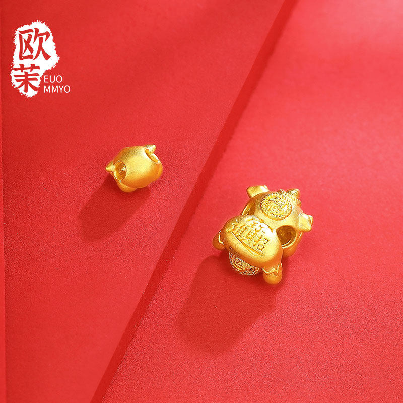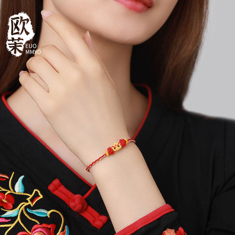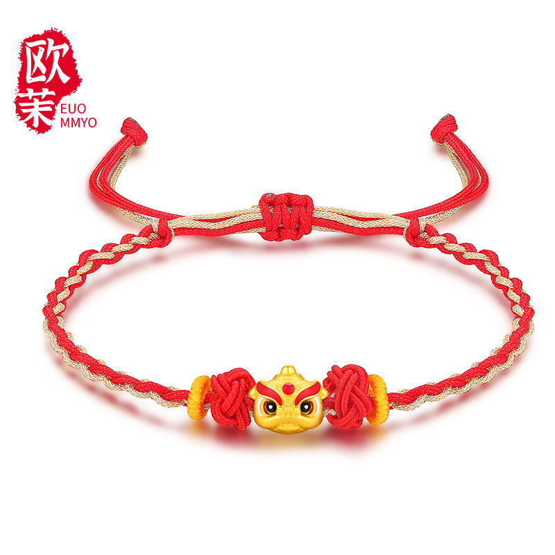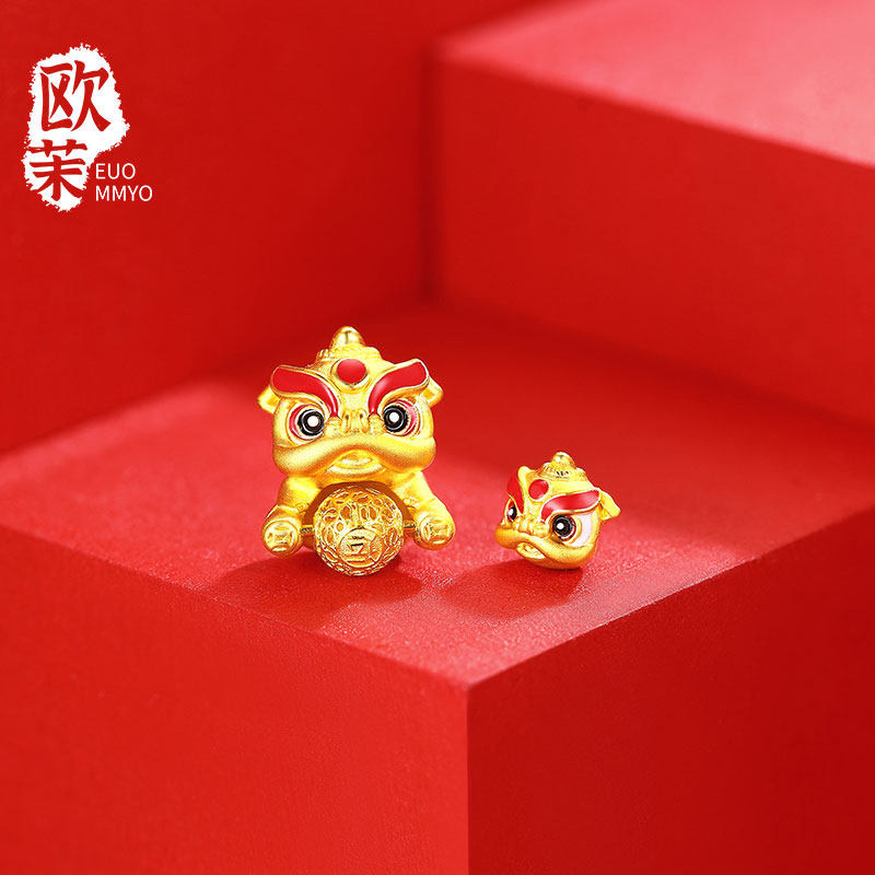 Gold Lucky Lion Dance Transfer Beads Pure Gold 999 Enamel Lucky Wake-up Lion Beads Auspicious Wake-up Lion Lulutong Bracelet