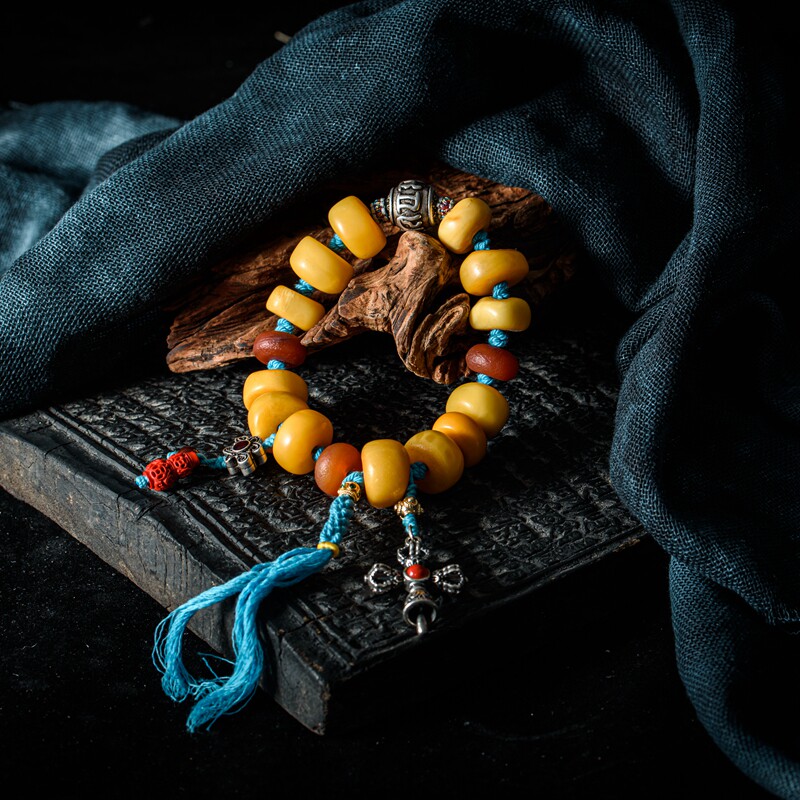 Original Design Lonely Products Natural Antique Old Honey Wax Chicken Oil Yellow Bracelet Holding High Density Old Flower Wax Single Ring Handmade