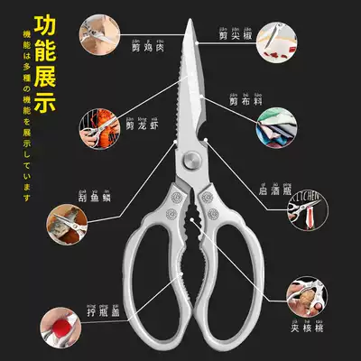Japanese kitchen scissors stainless steel household strong chicken bone and meat scissors multifunctional food barbecue fish scissors