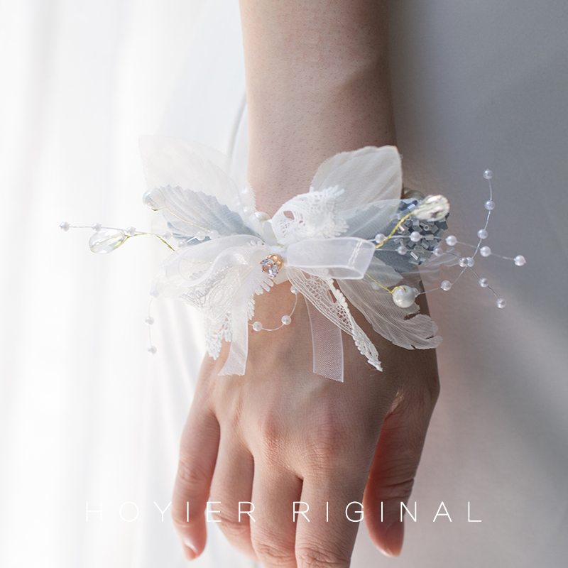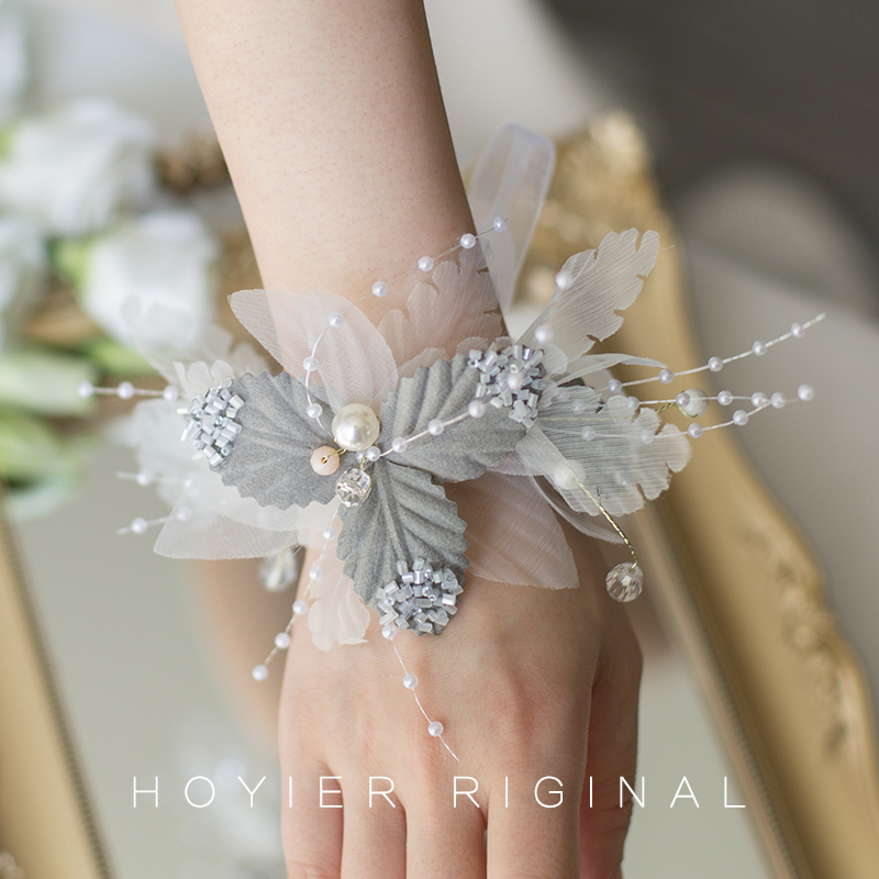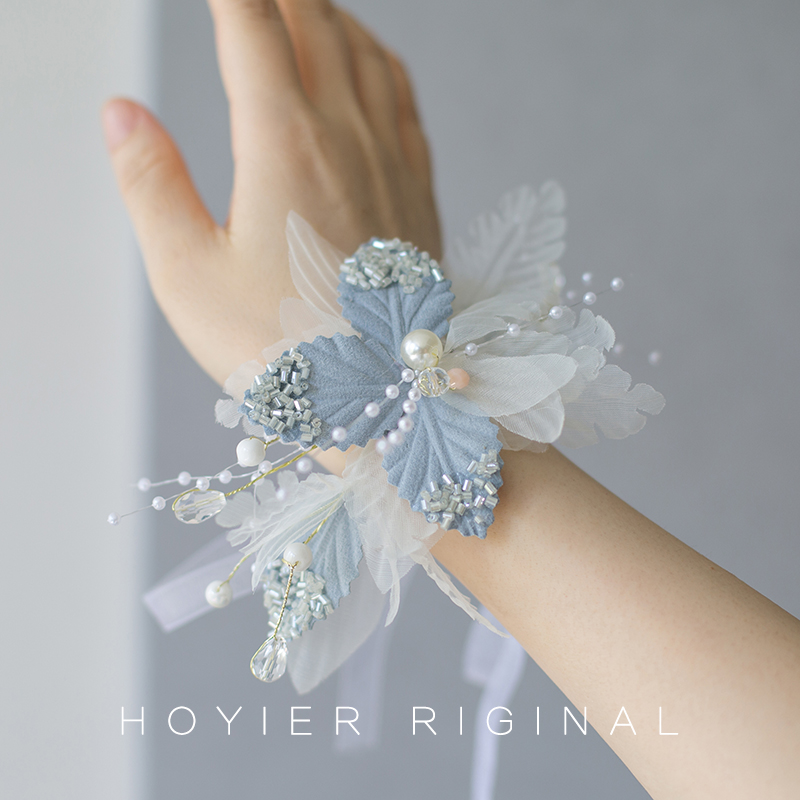 Flower also new blue theme wedding bride beautiful wrist flower bridesmaid pearl bracelet conference guest hand