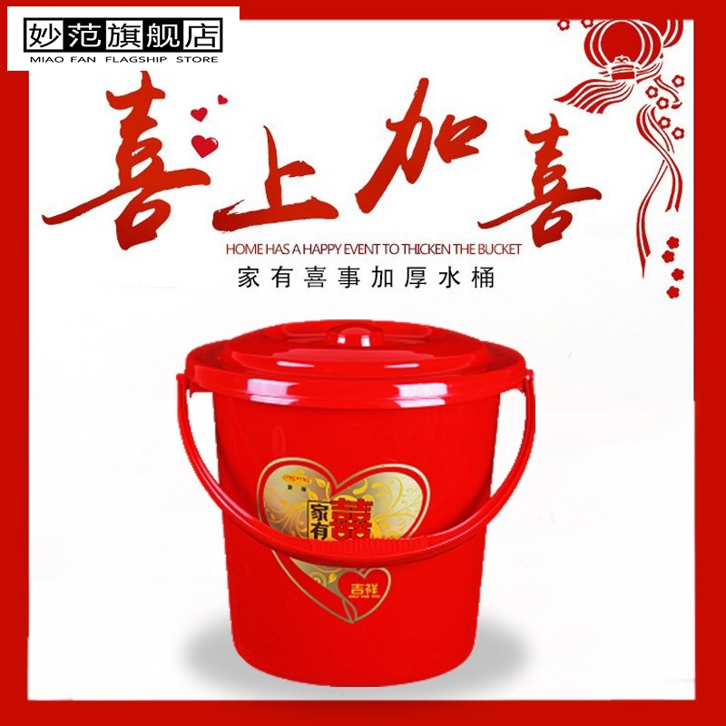 Red bucket housewarming moving small red bucket with cover plastic wedding dowry big red bucket portable hi bucket children and grandchildren bucket thick