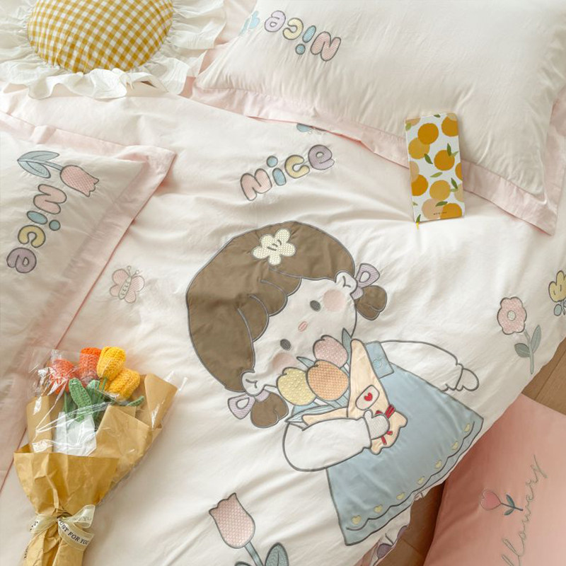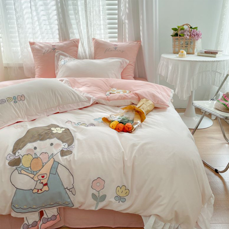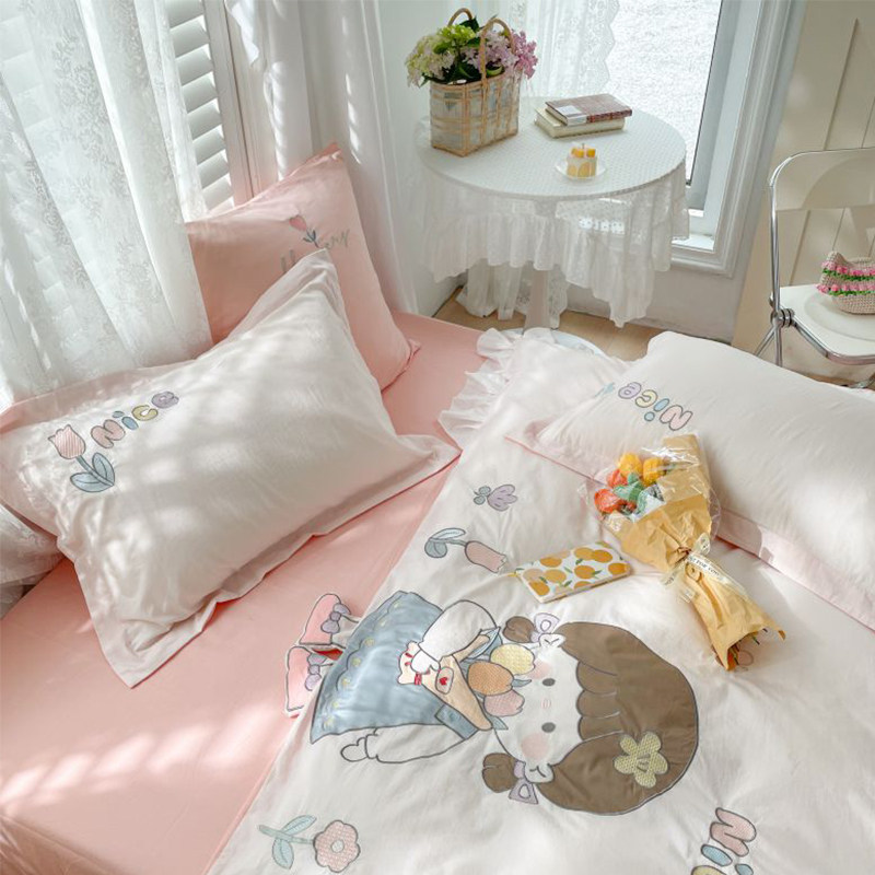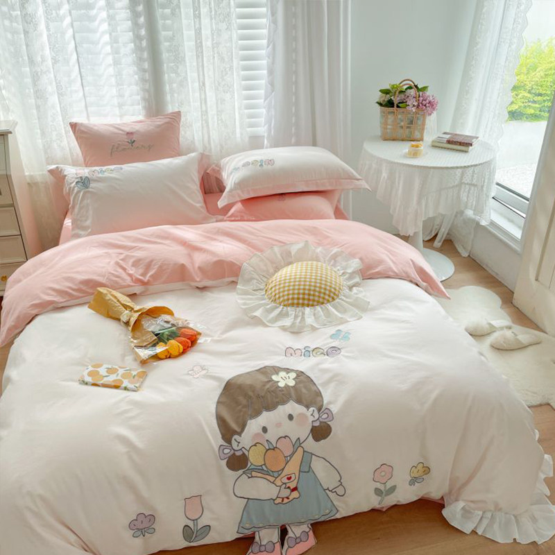All guests in summer small fresh cute cotton embroidery bed four sets of household pure cotton stickers are set