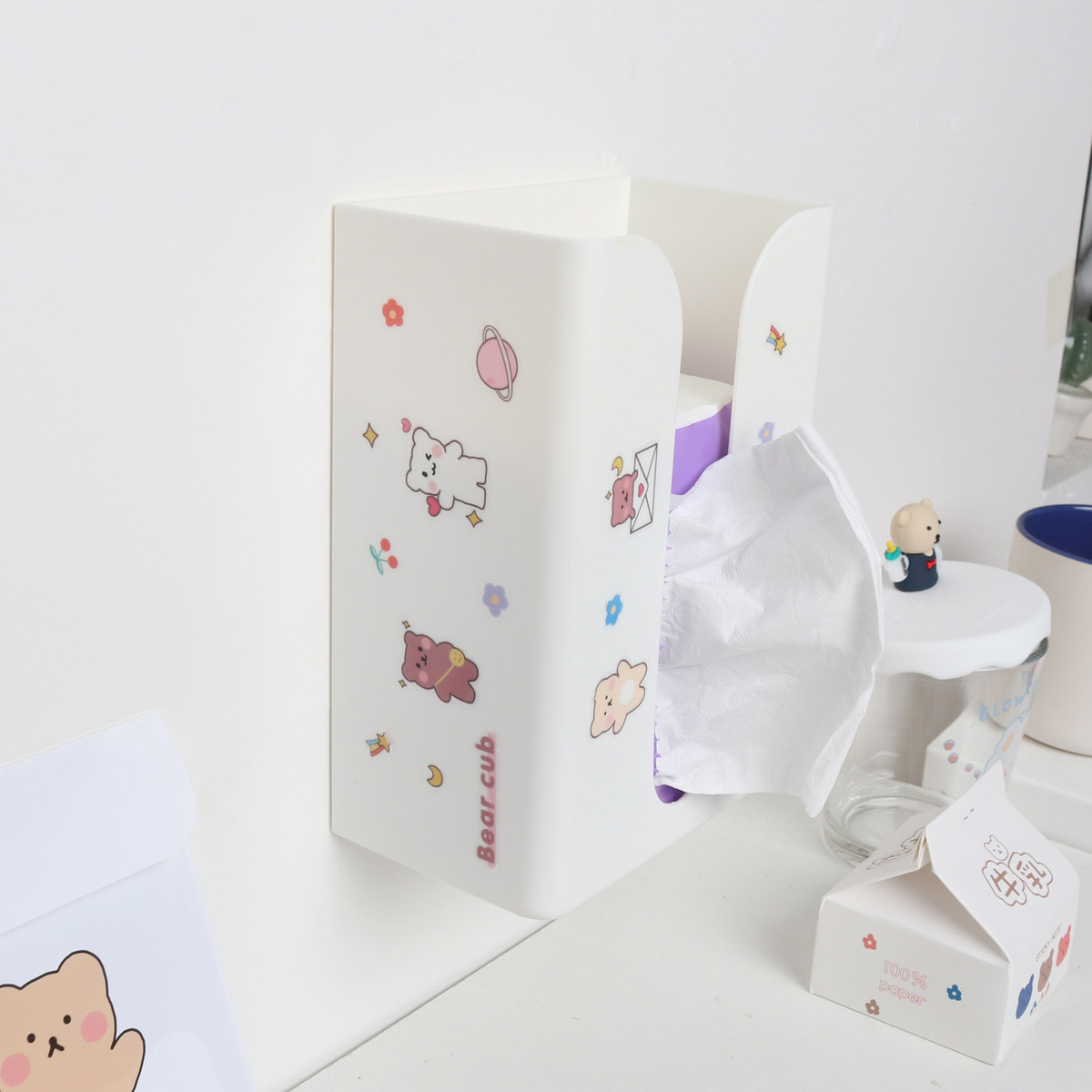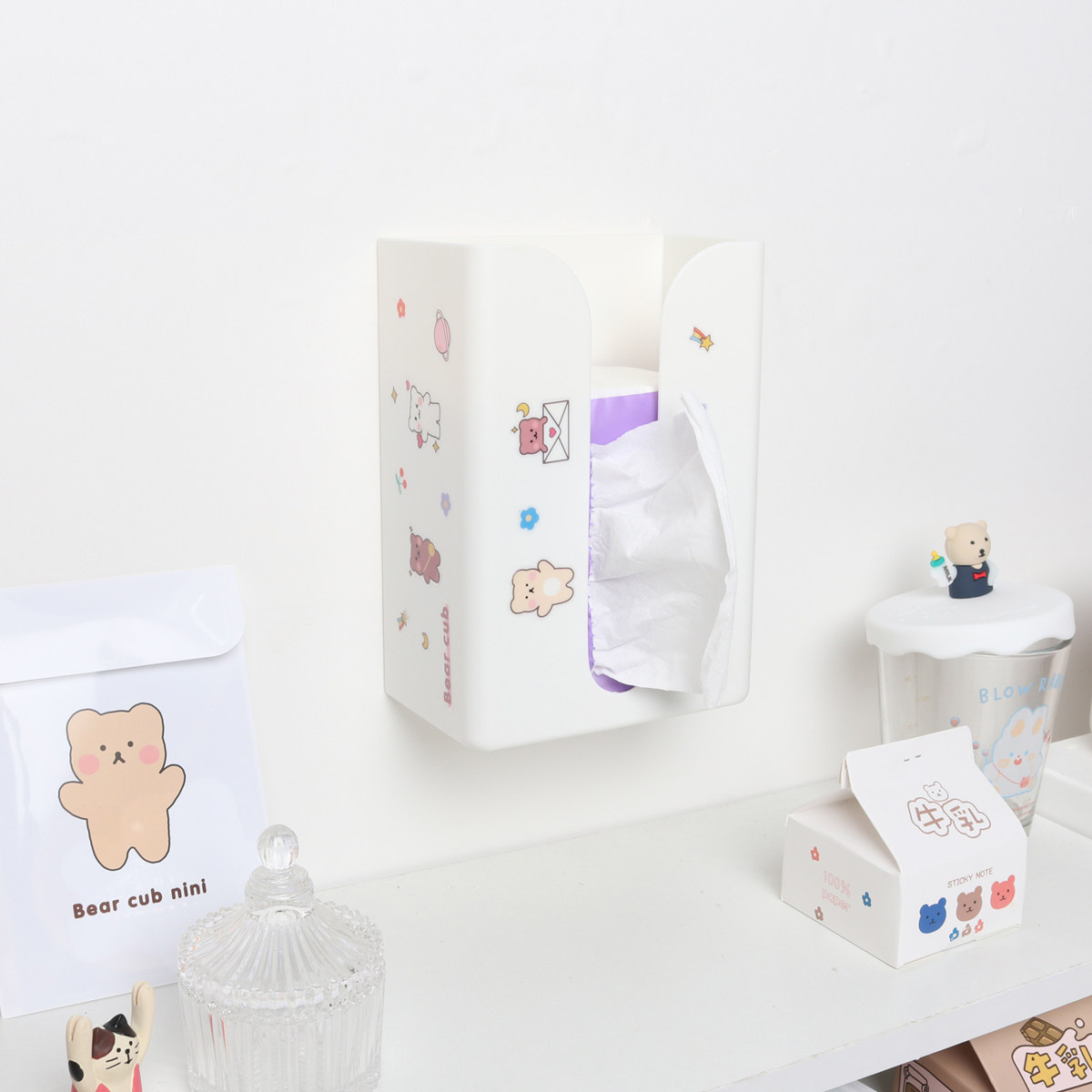 Wall tissue box bear sticker wall tissue box (send random stickers)