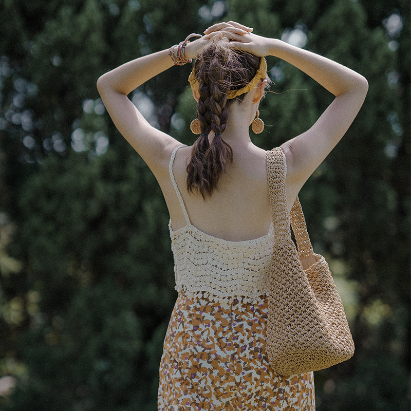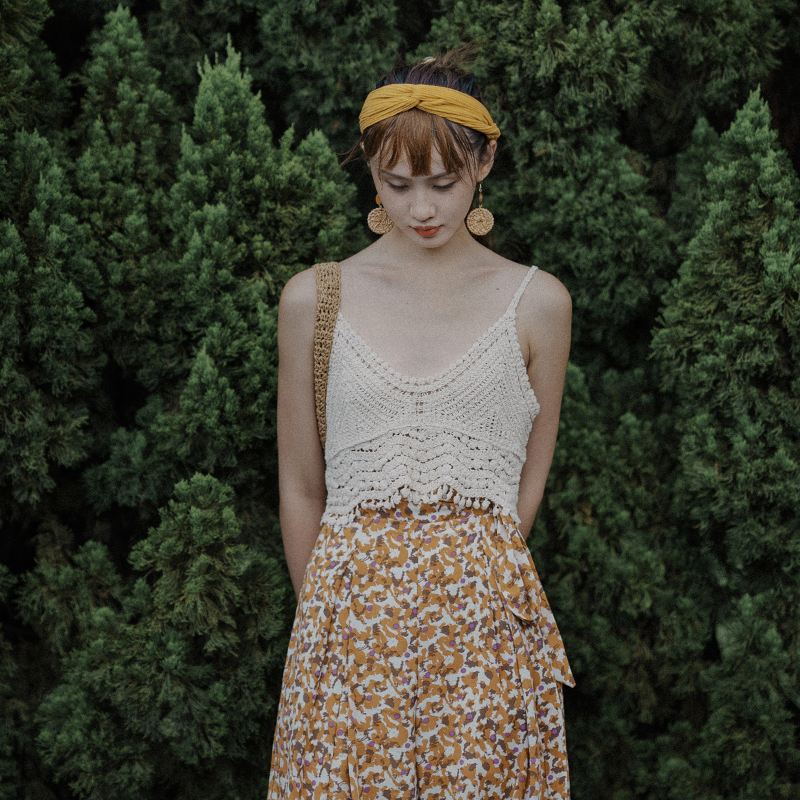 Dream of a Ma bohemian fringed little suspender seaside resort style short tank top with sexy hot girl leggings