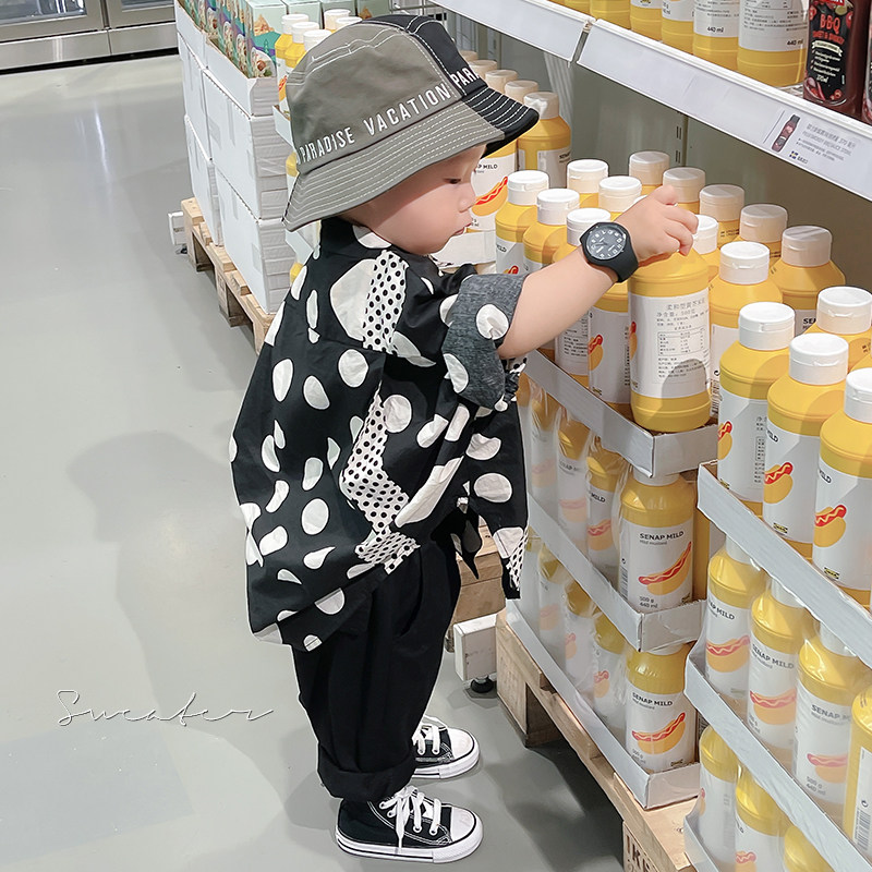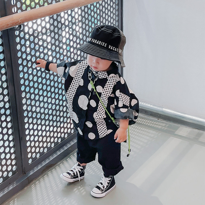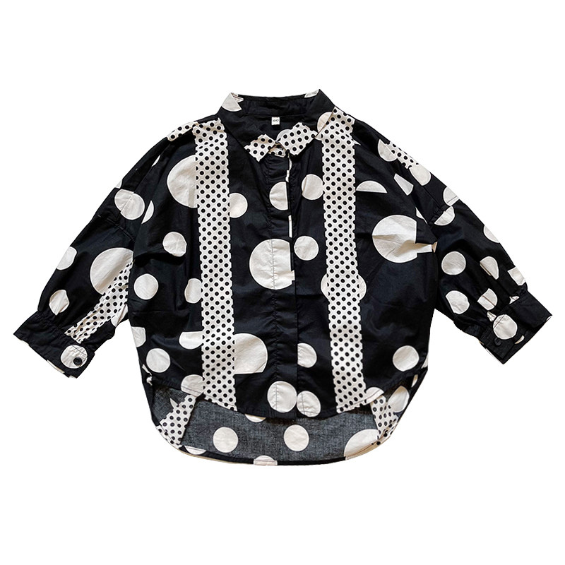 Luca Mother 22SS "Scum Men's Shirt" Boy Wave Dot Shirt Personality Long Sleeve Korean Version Children Ruffin Handsome Shirt