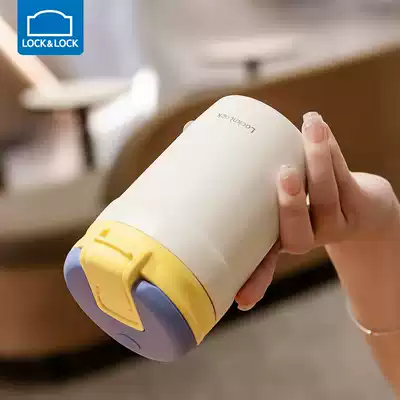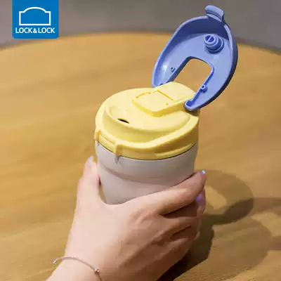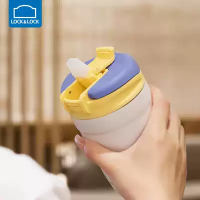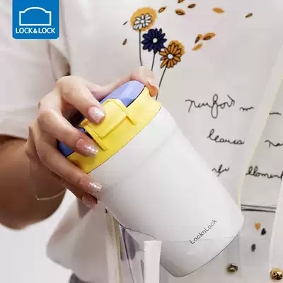 Lock lock lock Doodle thermos cup Female cute stainless steel straw cup Portable coffee cup Accompanying mini water cup