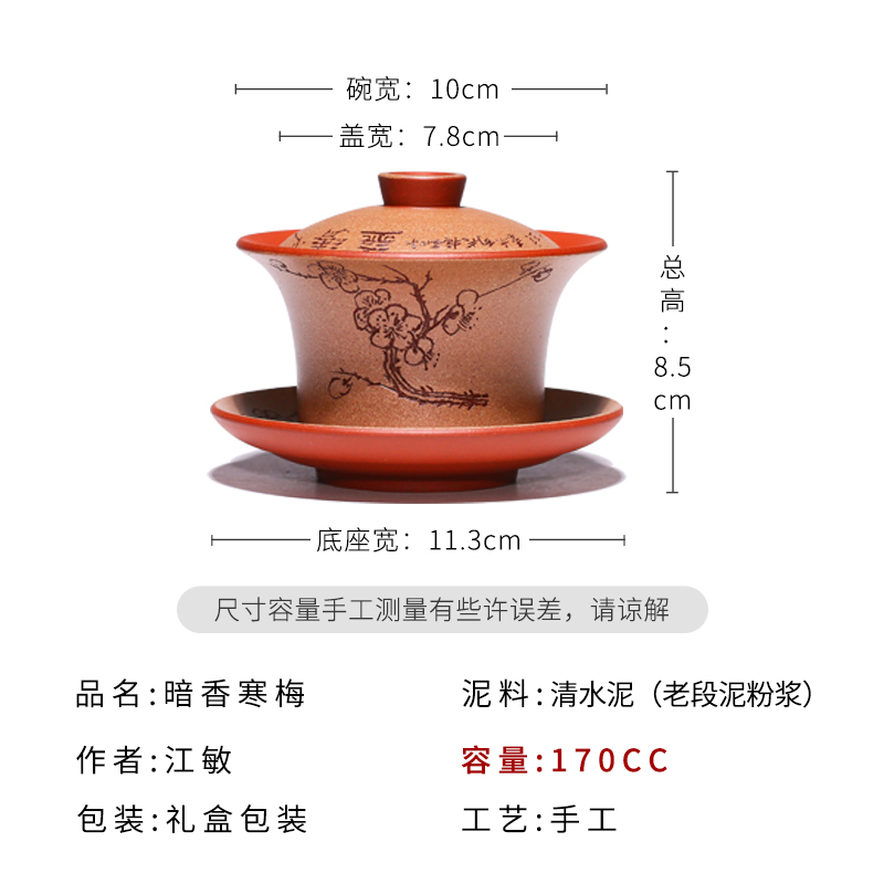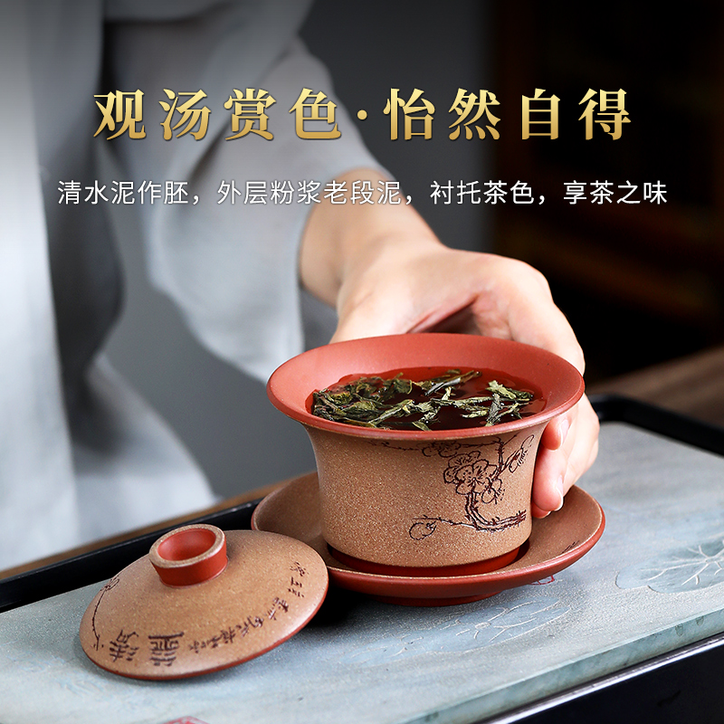 Yixing Zisha Sancai Covered Bowl Teacup Large Size Not Hot Tea Bowl Kung Fu Set Single Tea Set Plum Blossom Orchid