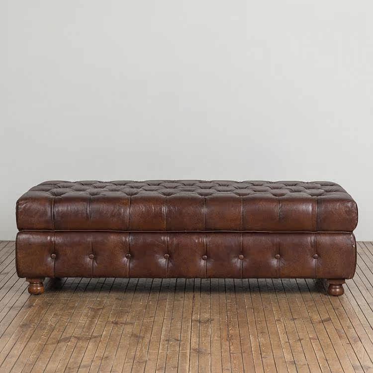 American retro leather shoe stool clothing store sofa stool foot cloakroom stool living room bench cowhide pier