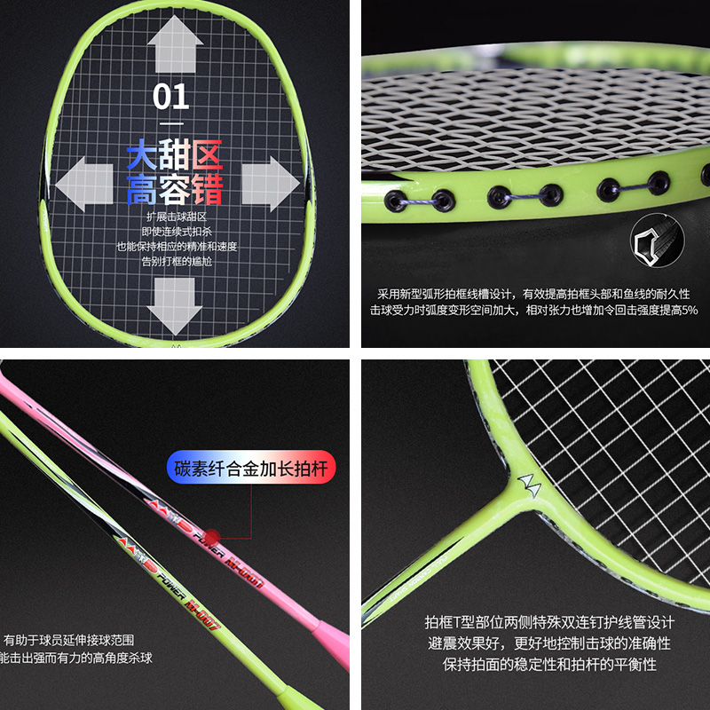 Badminton racket suit 2 students beginning durable adult single - carbon fiber alloy one - womans