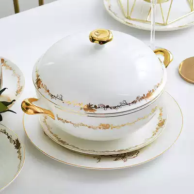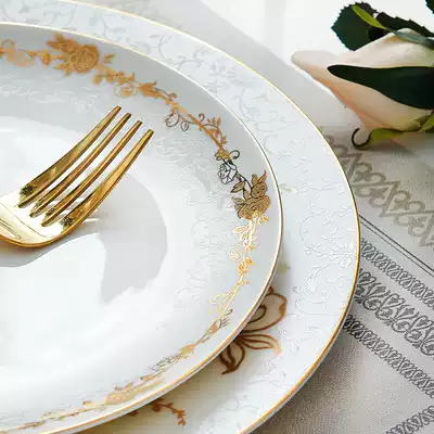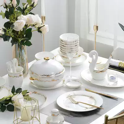 Guoyue bone porcelain tableware set new Chinese dishes set light luxury household Rice Bowl plate chopsticks combination housewarming