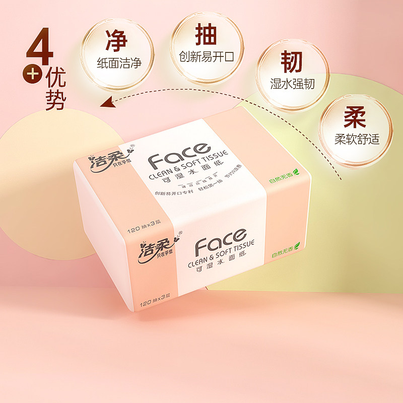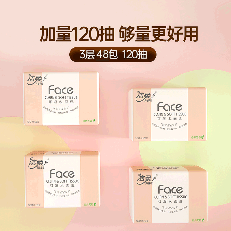 Clean soft extractable toilet paper face paper towel 3 layers 120 pumping 48 packs of household affordable napkin toilet paper toilet paper whole box