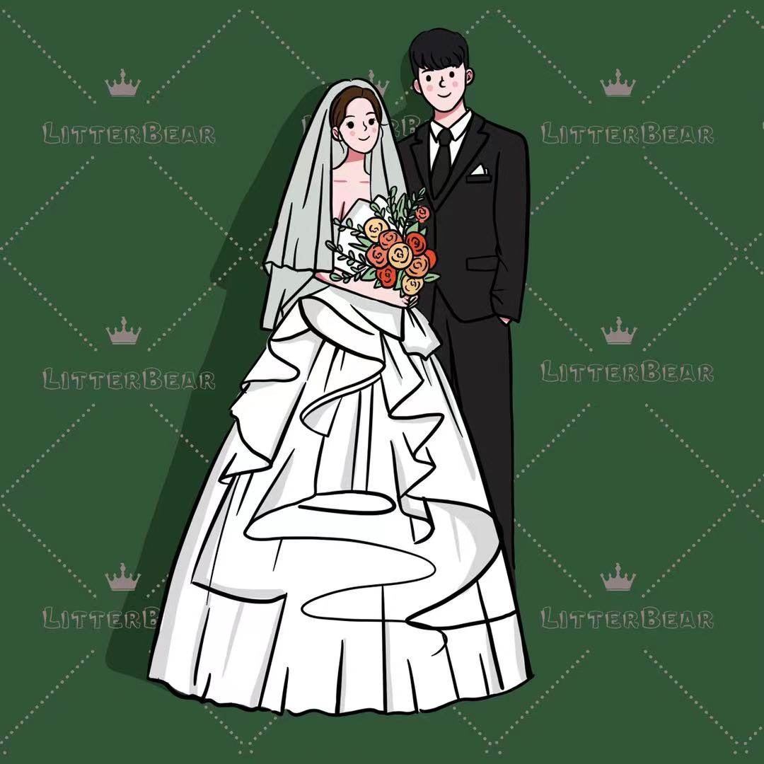 Hand-painted wedding avatar illustrator invites Cambodia to design Katong comic book hand-painted wedding photo Man-shaped greeting card customization