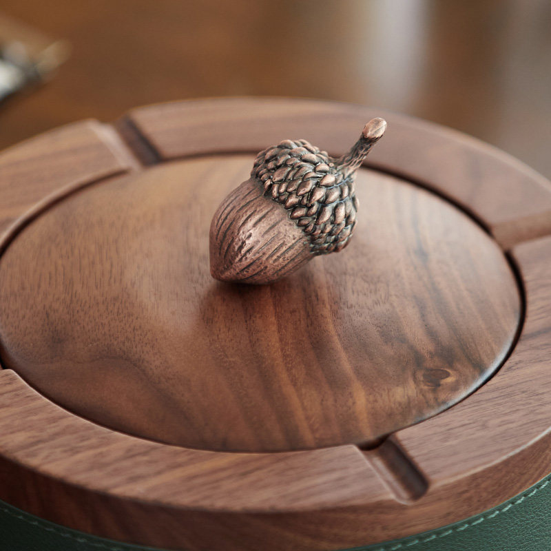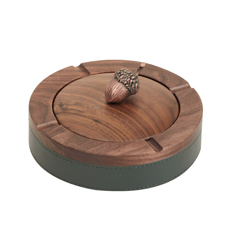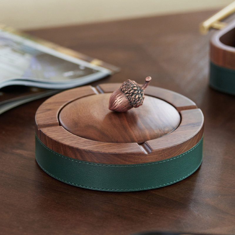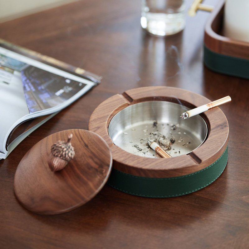 Black walnut ashtray home living room fashion anti-flying ashtray light luxury creative with lid office gift