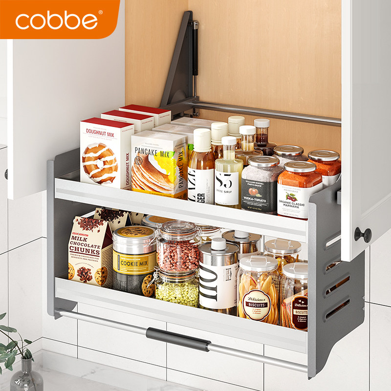 Cabbé Hanging Cabinet Lift Pull Basket Kitchen Integral Cupboard Push-and-pull Type Damping Lift Aluminum Alloy Lower-pull Sauce Blue