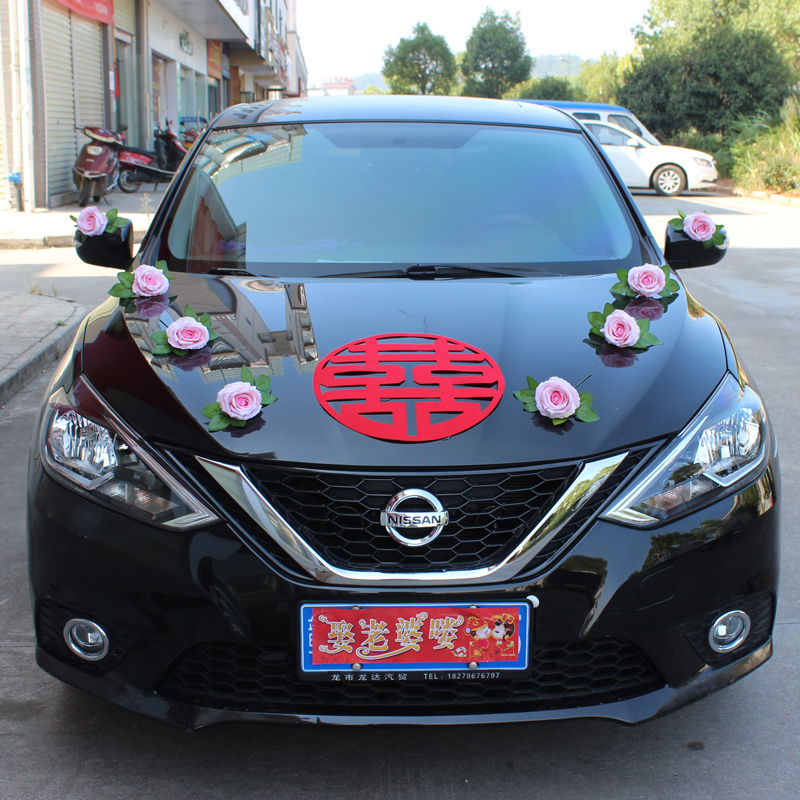 Emulation Flower Wedding Fleet Replica Car Decoration Flower Wedding Greet-to-flower Car Placement Wedding Celebration Flower Replica Car Hood Dress