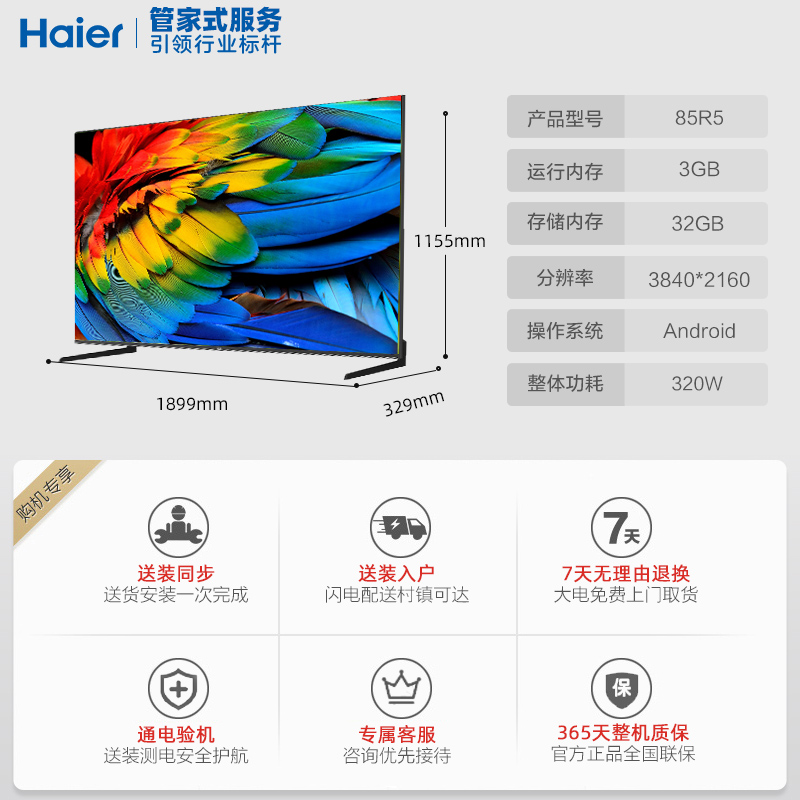 Haier 85-inch TV 4K high-definition smart large-screen smart voice LCD TV home 85R5