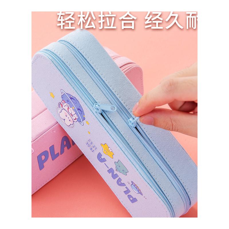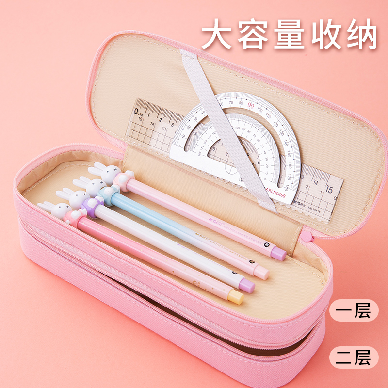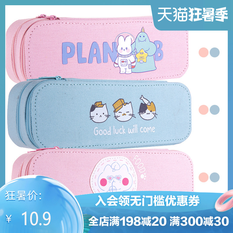 Chenguang stationery pencil case girl large-capacity canvas single-layer thickened double-layer stationery box girl primary and middle school students use study pencil storage box durable cute multi-functional simple ins pencil case