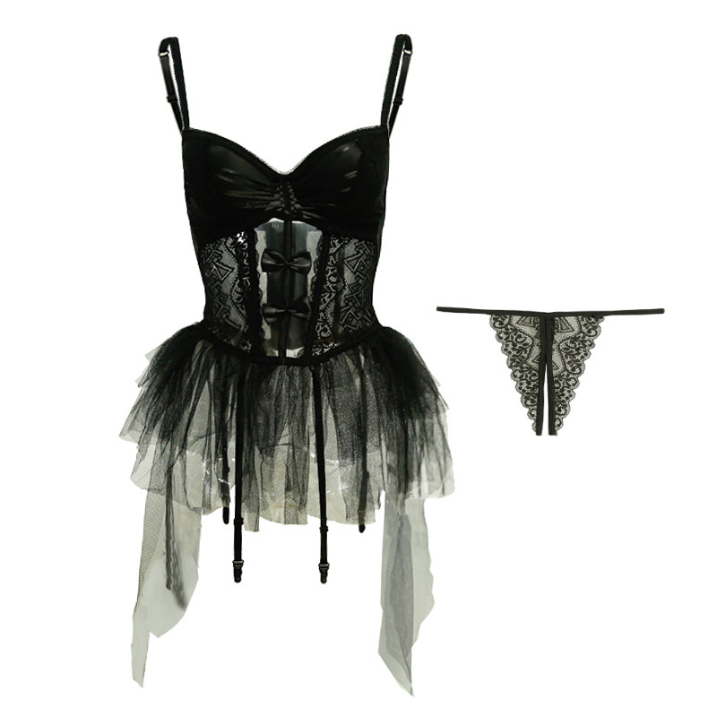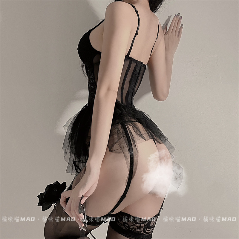 Orange Taste Meow Lace sexy transparent small breasted underwear female steel ring plastic body harness horse chia one-piece dress fluffy skirt suit