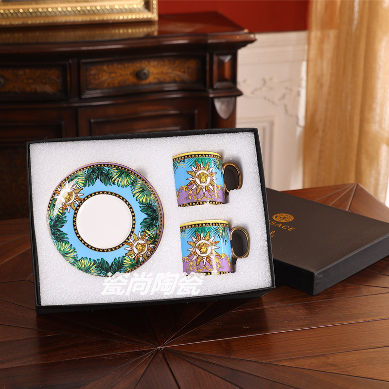Eurostyle Meadusa Bone Porcelain Coffee Cup English-style Afternoon Flower Tea Cup Refreshments Plate Ceramic Coffee Cup Courtesy Kit