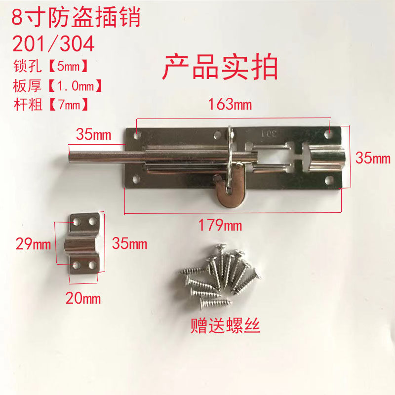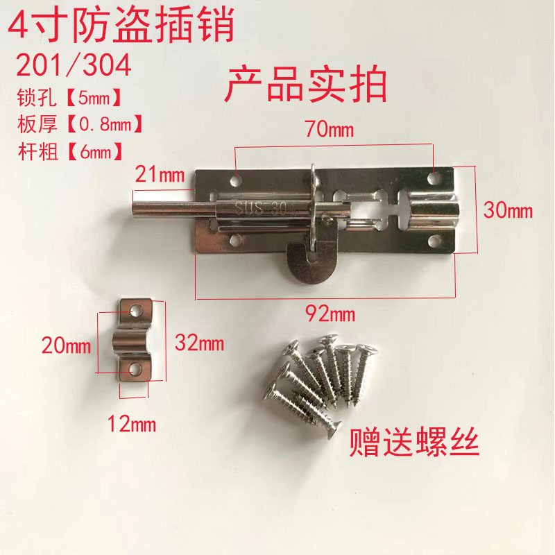 Stainless steel bolt anti-theft door bolt wooden door and window surface mounted padlock fixed bolt room door buckle powder room door lock buckle