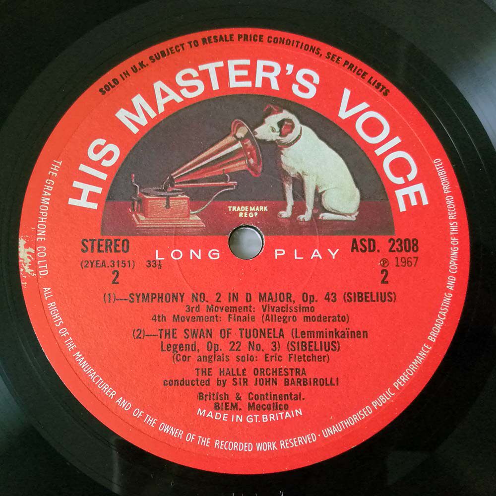 HMV ASD2308 first edition of Barbirolli Barbirolli Sibelius 2nd handed LP