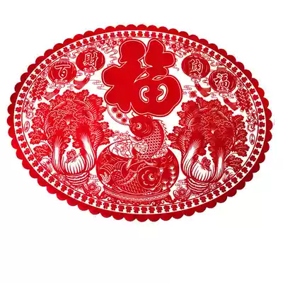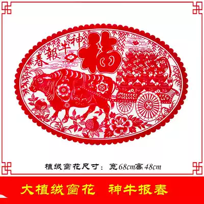 2021 Year of the Ox Elliptical Spring Festival New Year Painting Large Electrostatic Flocking Window Flower Paper-cut Fu Word Wall Window Paste