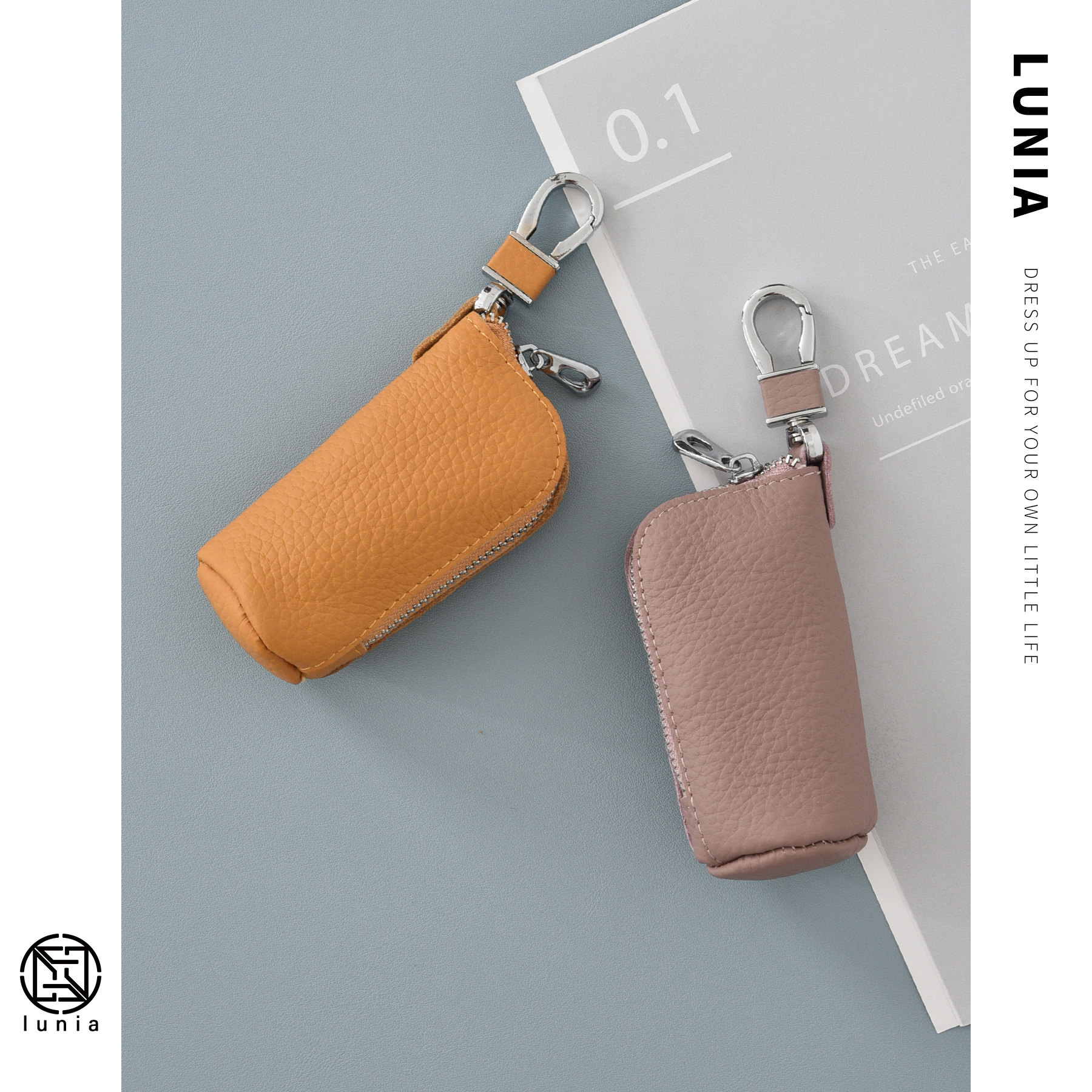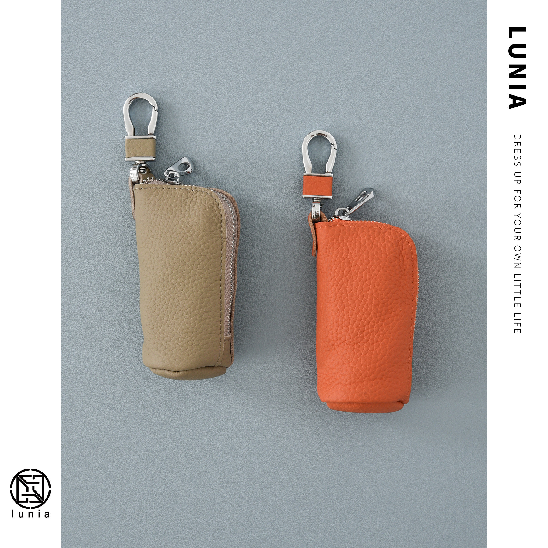 Cylindrical leather key case soft first layer cowhide car key case large capacity zipper anti-theft door key case
