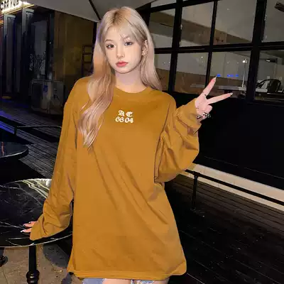 AE6604 American Street T-shirt long sleeve women's summer thin loose solid color round neck cotton casual base top