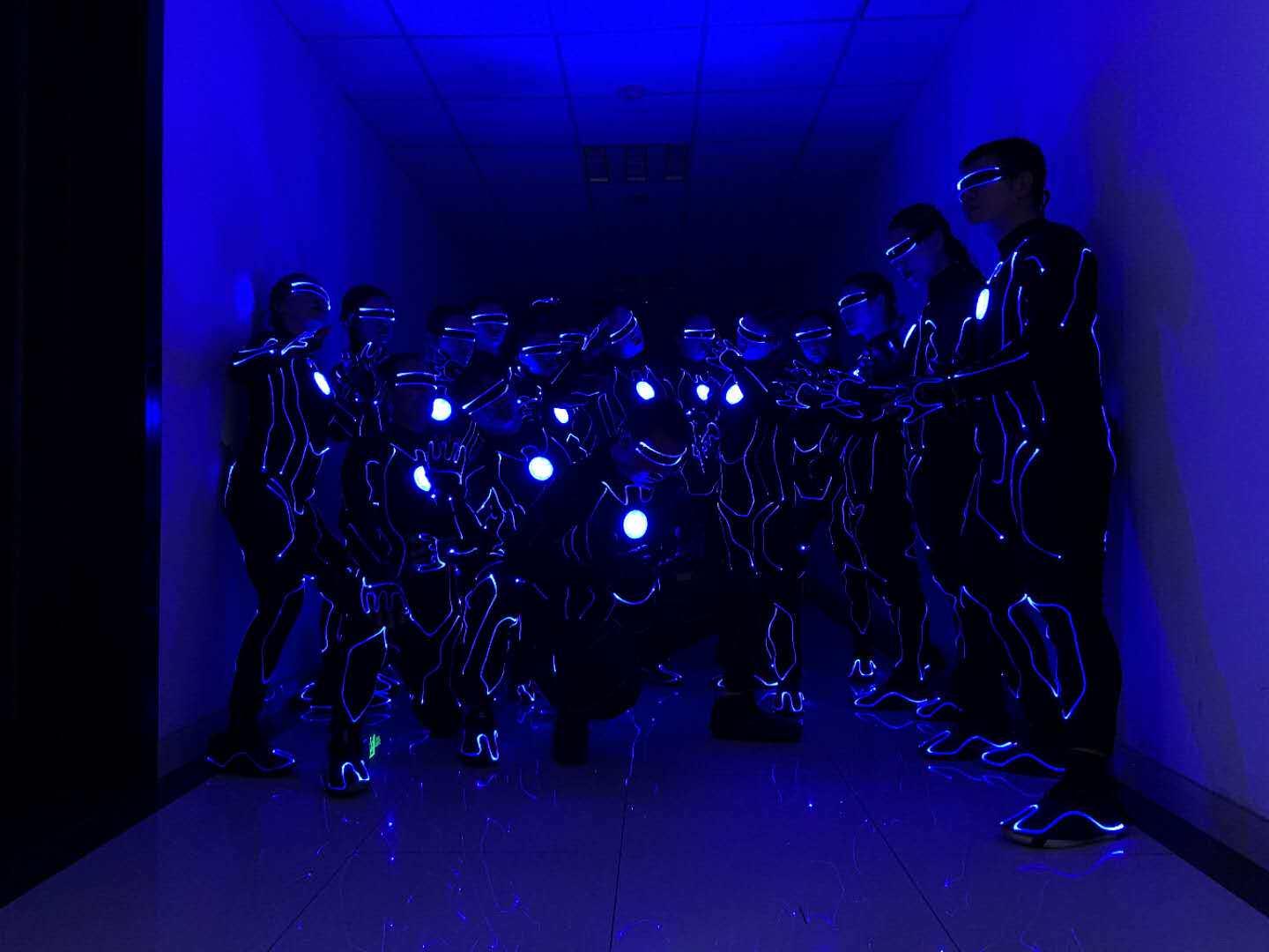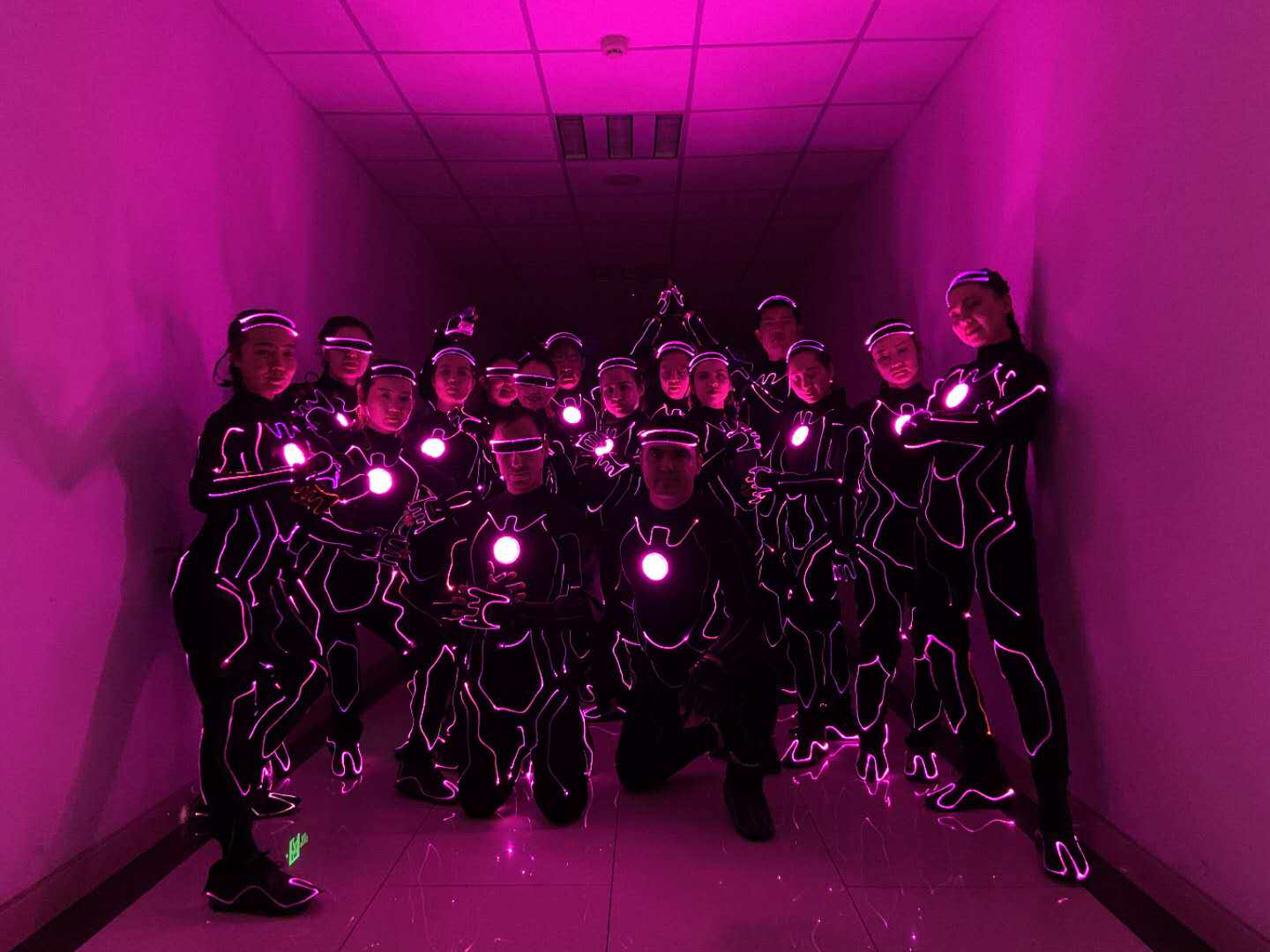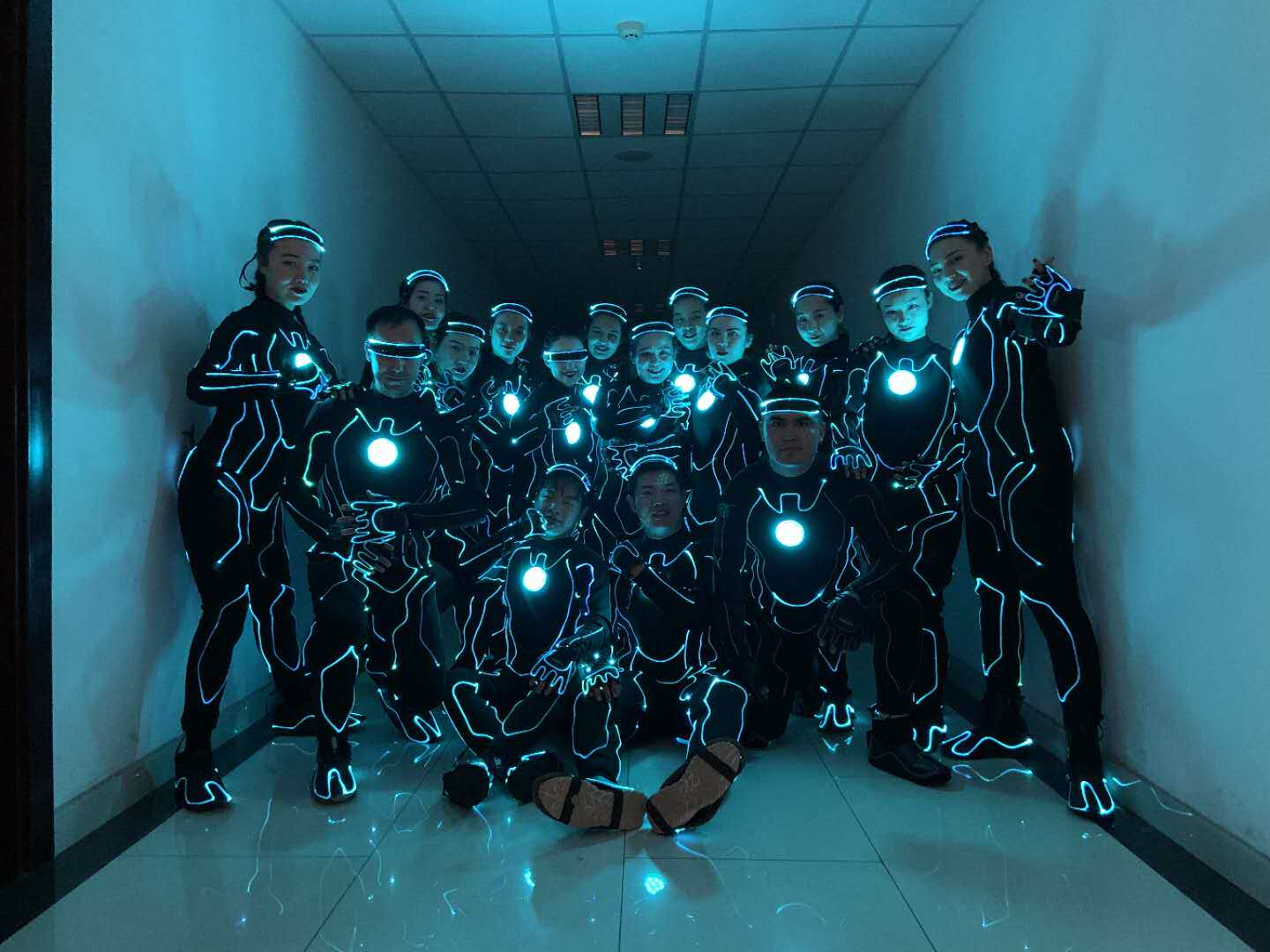 Dance team performance luminous programming clothing fiber optic costumes Iron Man armor Robocop futuristic stage performance