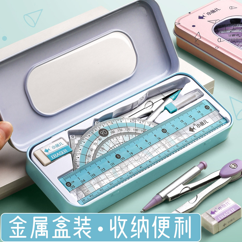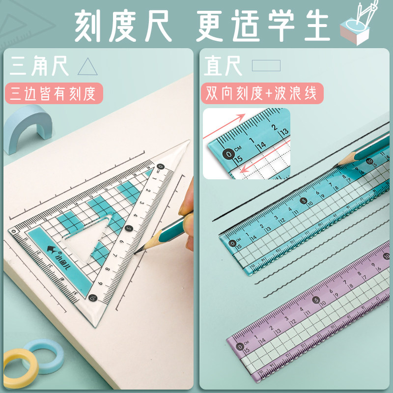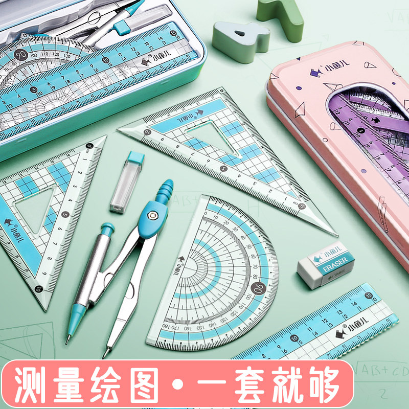 Compass ruler set cute triangle ruler student stationery straight ruler triangle plate primary school students set ruler students with multi-functional junior high school students drawing metal ruler to learn to draw
