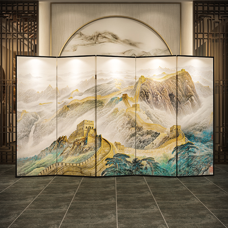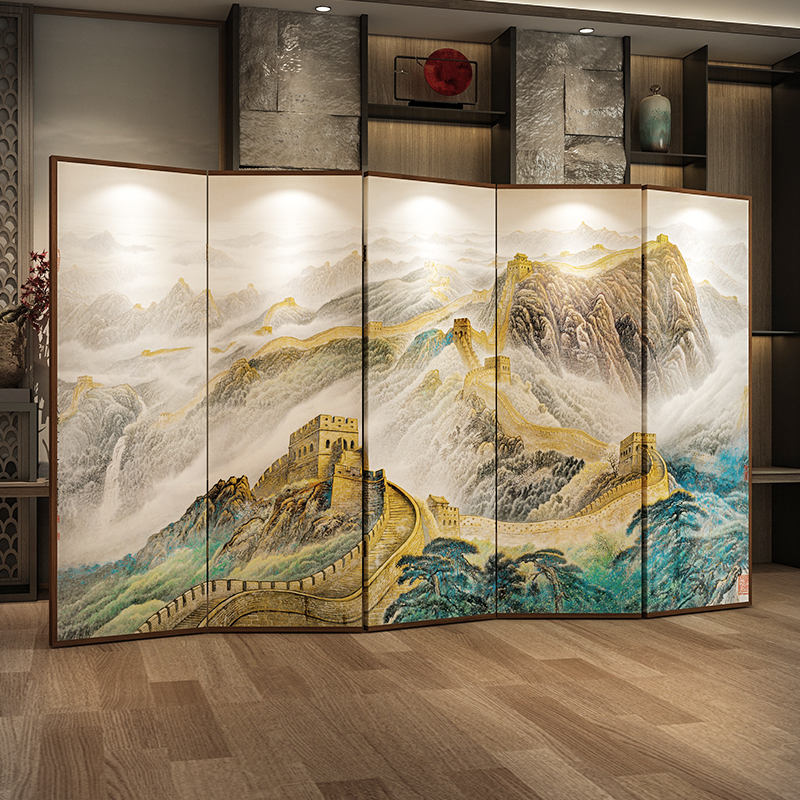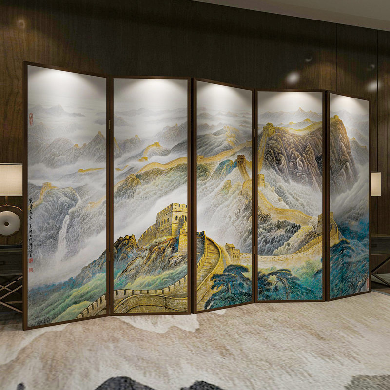 New Chinese-style Screen partition Living room Xuanguan Tea Room Hotel Office Corporate hotel Solid Wood Folding Screen Wrapping the Great Wall
