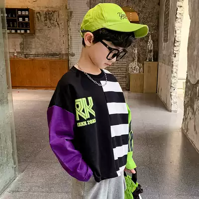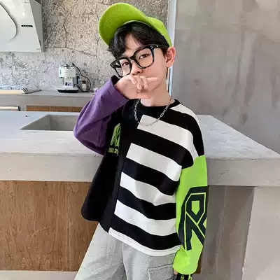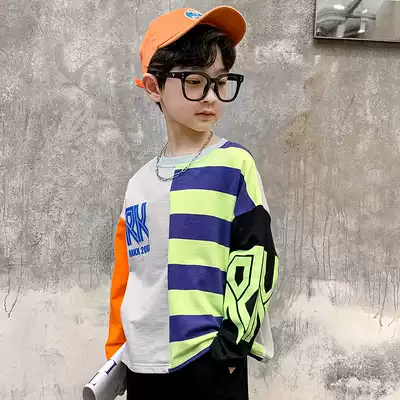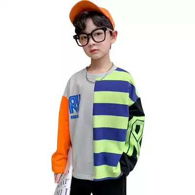 Men's clothing long sleeve thick cotton T2021 Autumn New stripe stitching loose cool fashion thick T-shirt SY-6509