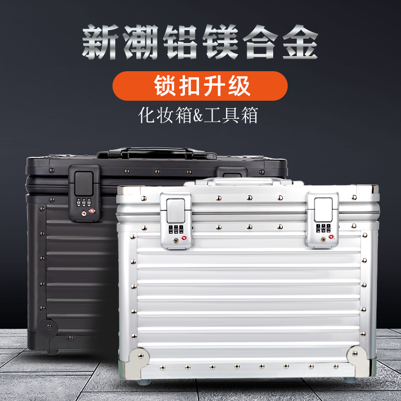 Metal Aluminum Magnesium Alloy Suitcases Makeup Case Large Capacity Toolbox Equipment Instruments box Beauty containing Box Embroidered