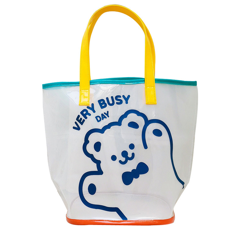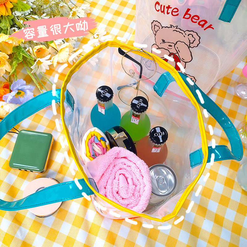 South Korea Fresh Summer Transparent PVC Hands Carry Swim Bag Fashion Holiday Beach Bag Hand Bag Dry And Wet Separation Bag