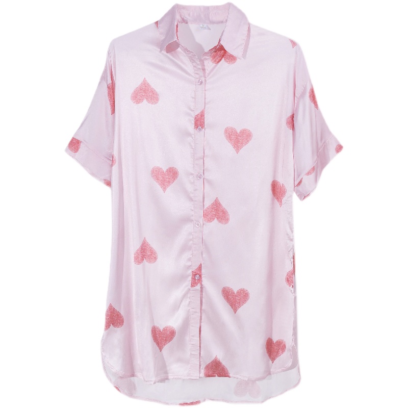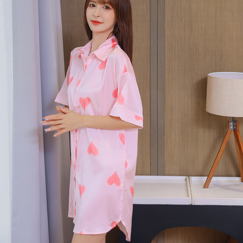 Sleepwear Woman Shirt 2021 New Summer Short Sleeve Sweet home Exterior Wear Pink Shirt Ice Silk Sleeping Dress