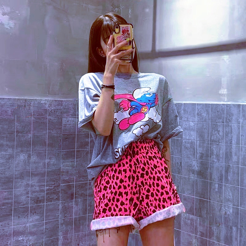 Goddess Spice Girl with the same style Sao pink rose red fitness sports loose casual hot pants wide-leg BAO WEN five-point shorts