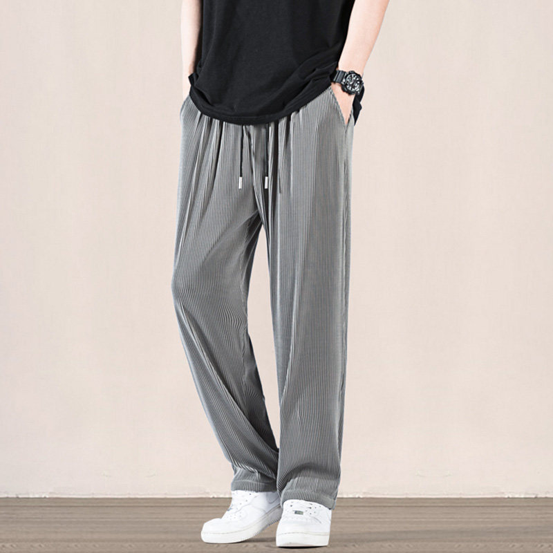 In 2021, men's summer new glass broad leg pants original trend thin straight tube relaxed air conditioning trousers