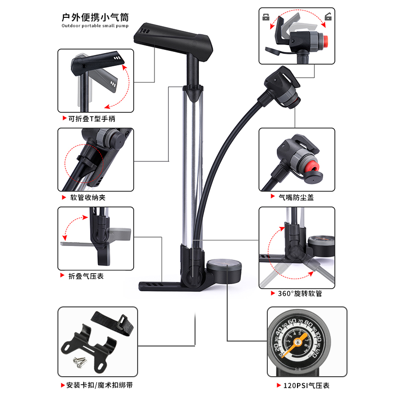 giyo Taiwan imported special road mountaineering bicycle pump high pressure belt pressure gauge American French mouth micro