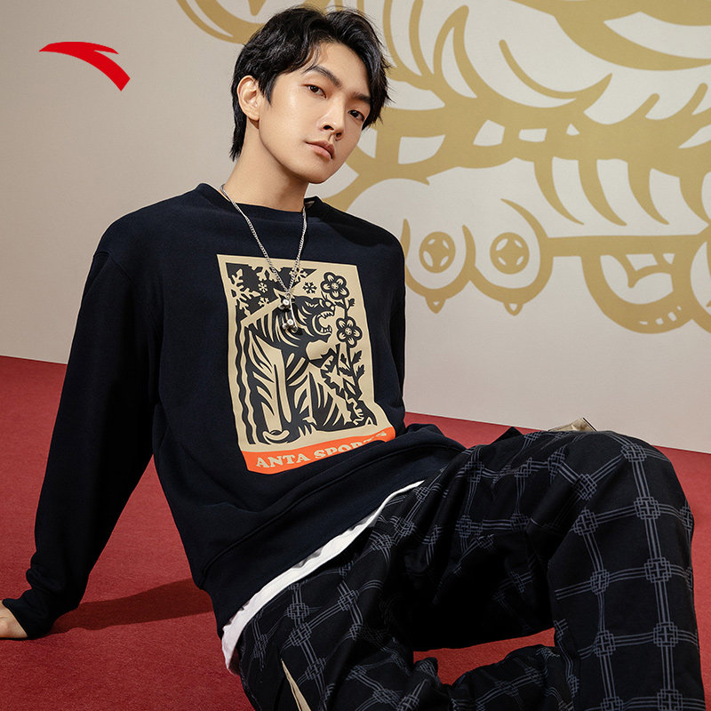 (Wang Yibo Tongan) An Antlet Tiger Tiger Raw Wind -- Lovers Thick T-shirt Sports Long Sleeve Blouse Blouse and Men and Women in the same section