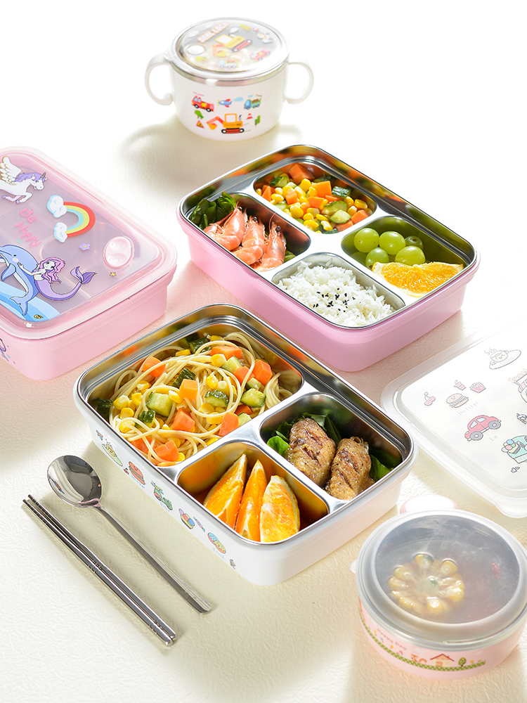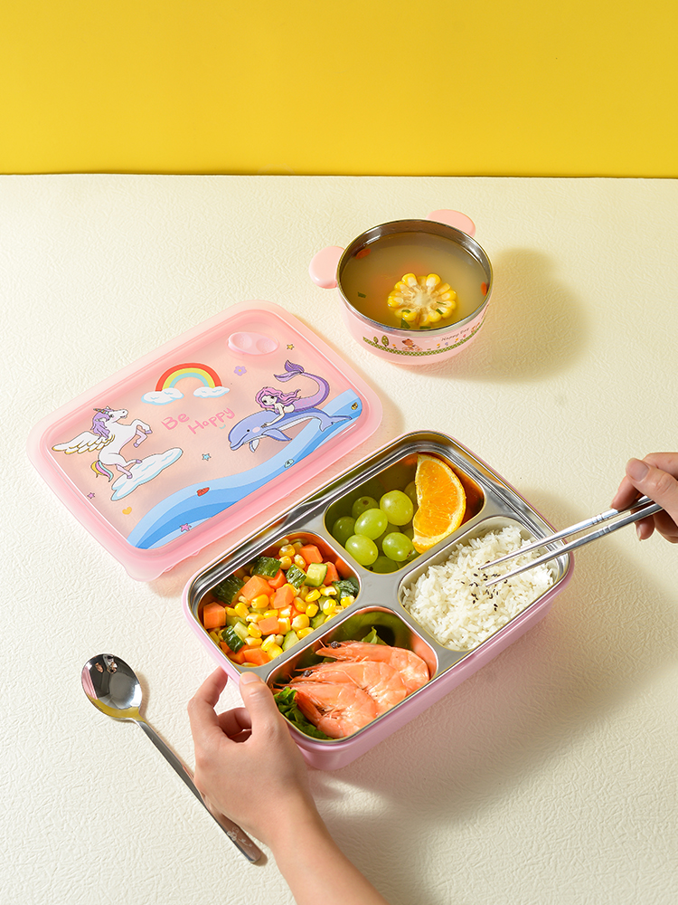 Unicorn children's 304 stainless steel lunch box for primary school students four special kindergarten lunch box for girls lunch box