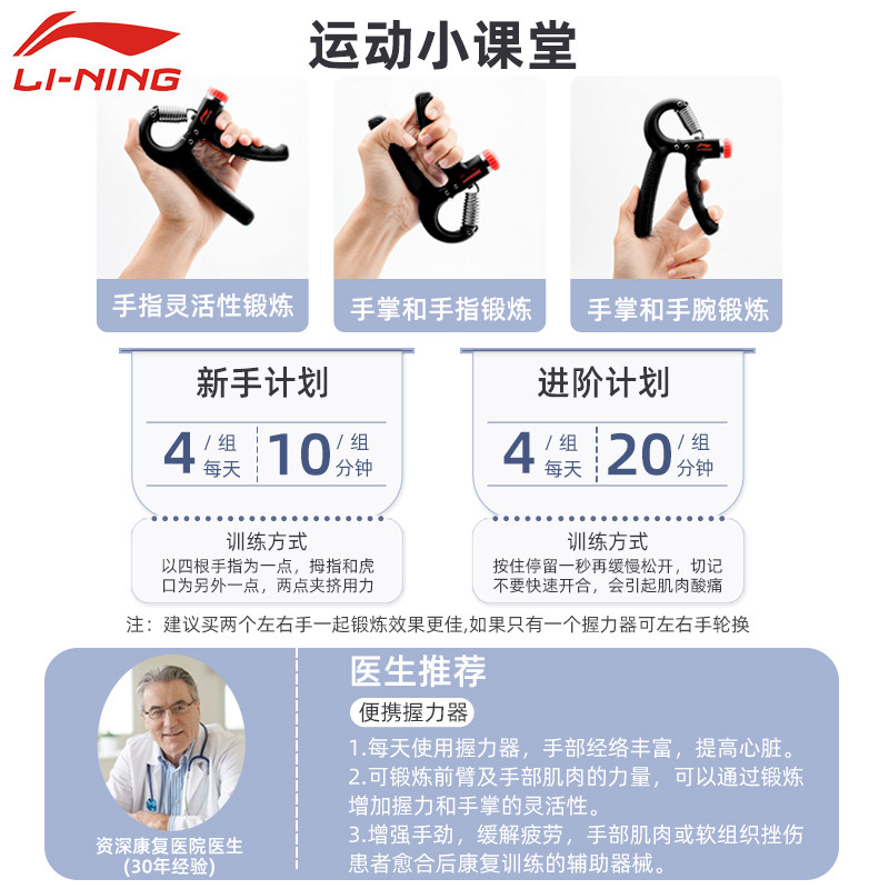 Li Ning Grip Strength Instrumental Male Rehabilitation Finger Force Training Hand Force Equipment Seniors Professional Practice Hands Strength Female Wrist Force