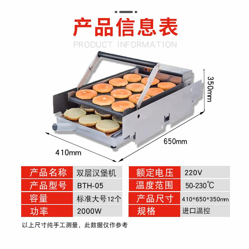 Zhanzhuo double-layer burger machine commercial small automatic heating toaster toaster toaster burger shop equipment full set