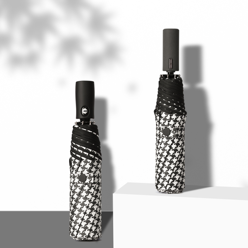 Fully automatic Chidori grid rain and shine umbrella one key open and close increase explosion-proof punch men's and women's couples anti-ultraviolet umbrella