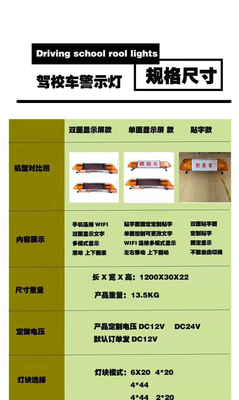 LED display coach Coach Car Driving School Exam Roof Light Sticker Character Pops Warning Long Row Lights Mobile Phone Changed Character