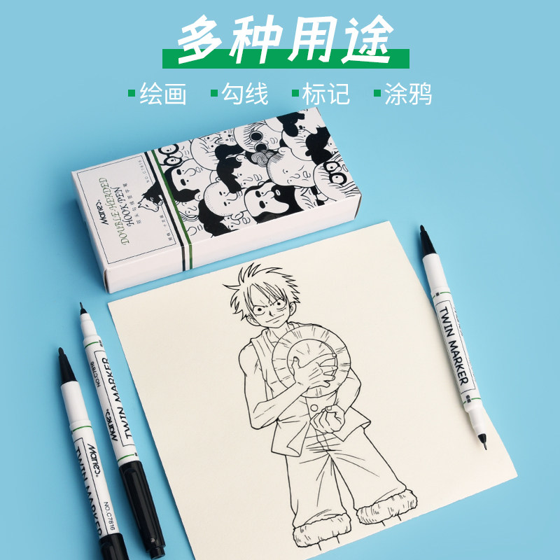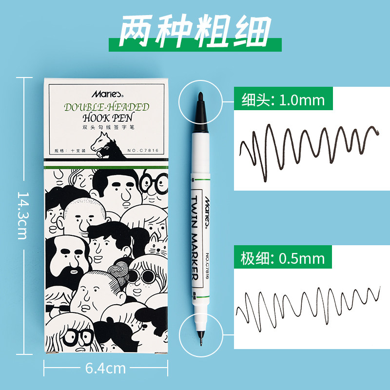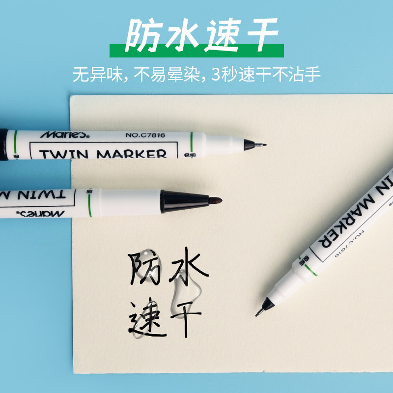 Marley small double-headed marker pen hook line pen for art students special black oily small head fine-headed mic pen children's painting students with stroke color quick-drying waterproof pen does not fade thick and thin both ends