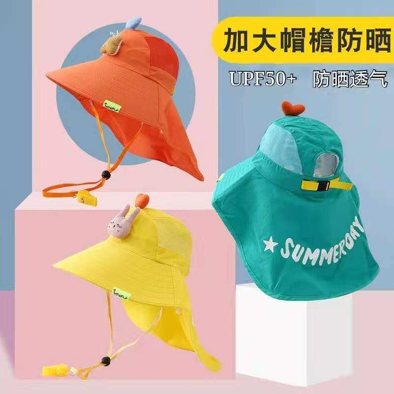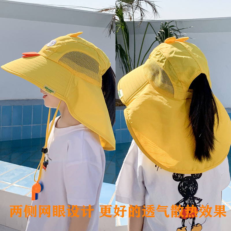 Children's sun protection hat thin section breathable boys and girls seaside fisherman hat baby sunshade large brim anti-UV hat
